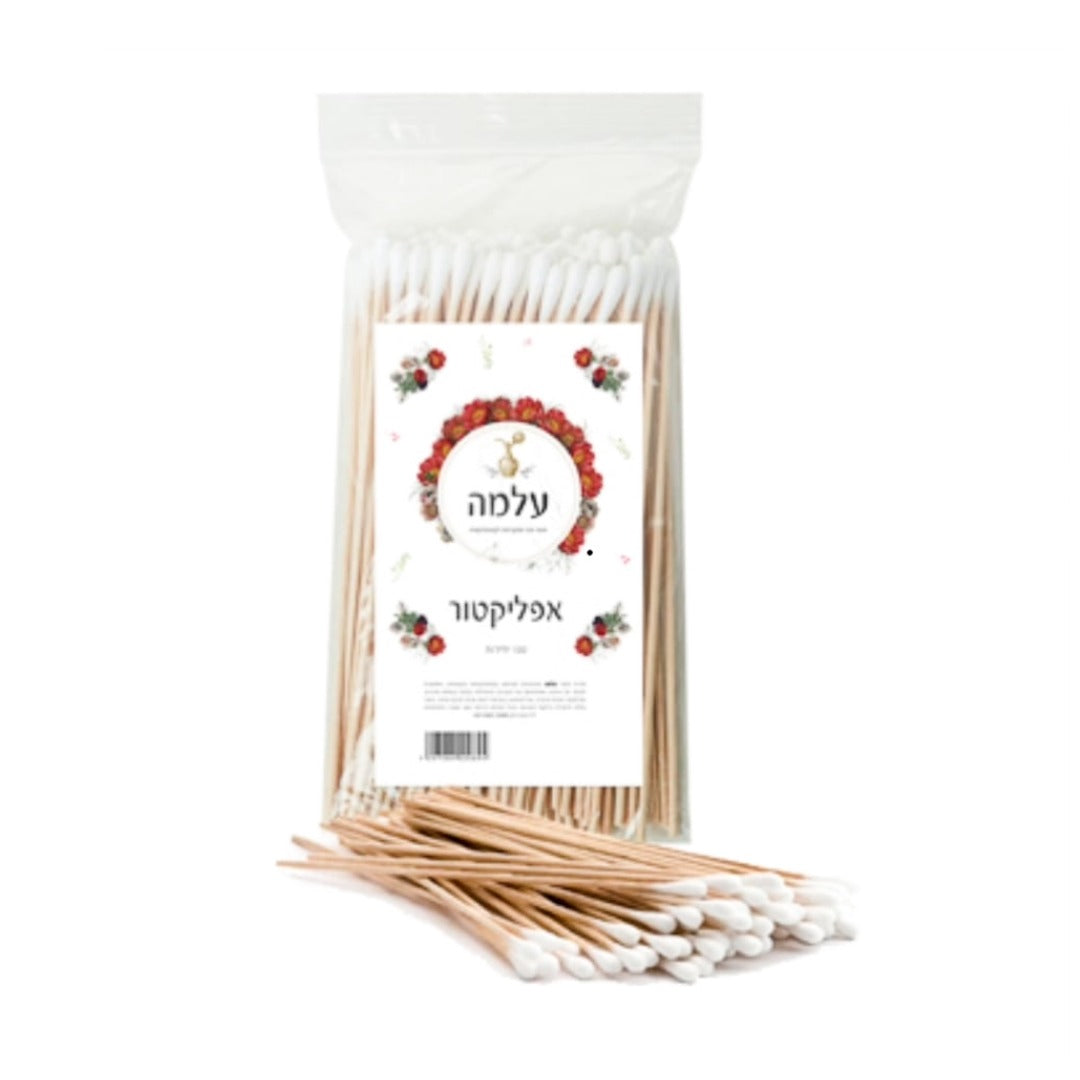 'אפליקטורים מעץ ראש צמר גפן עלמה 15 ס"מ 100 יח