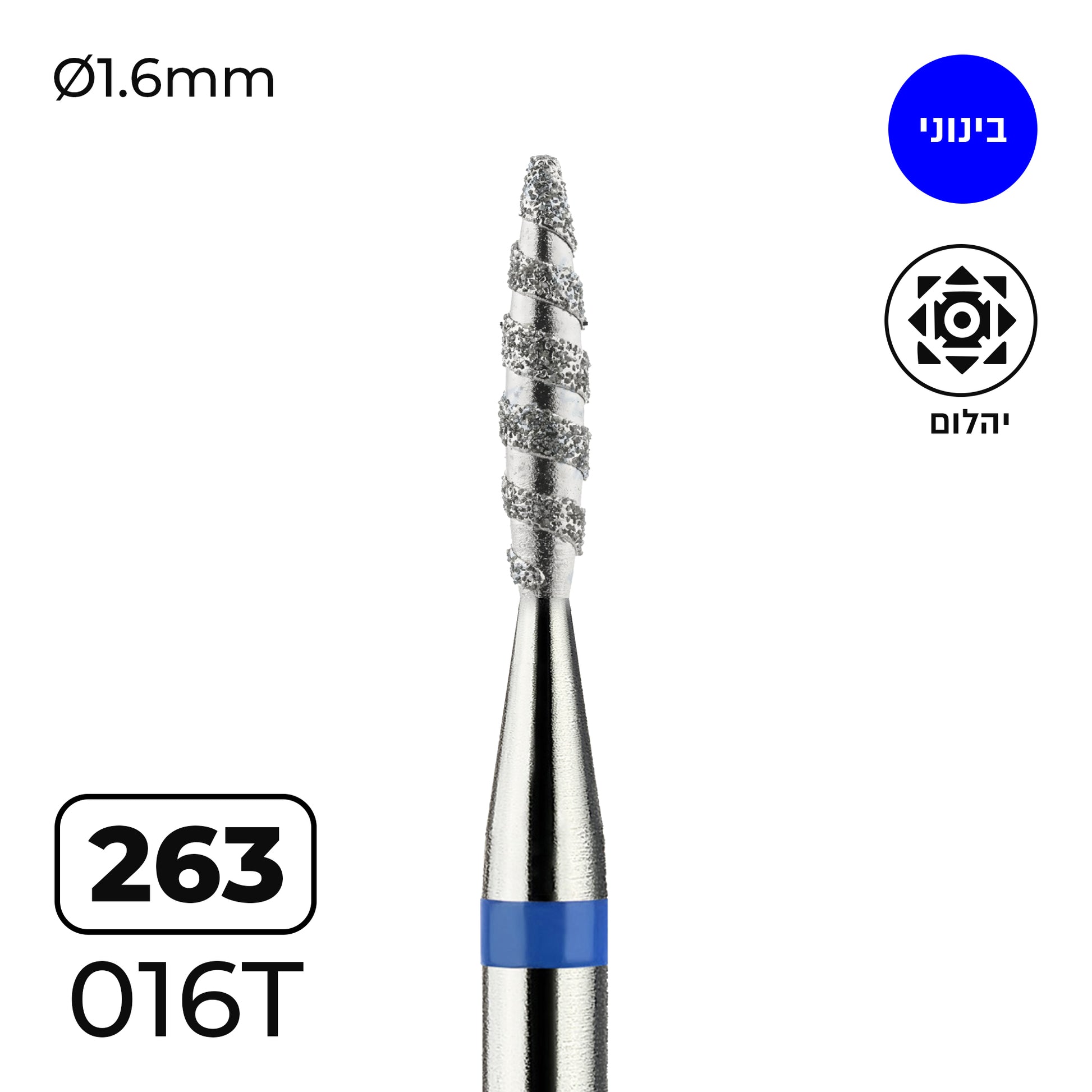 ראש שיוף טורנדו, בעיצוב להבה ייחודי ובציפוי שבבי יהלום מסודרים בספירלה, מעניק דיוק ויעילות מקסימלית במניקור מקצועי.