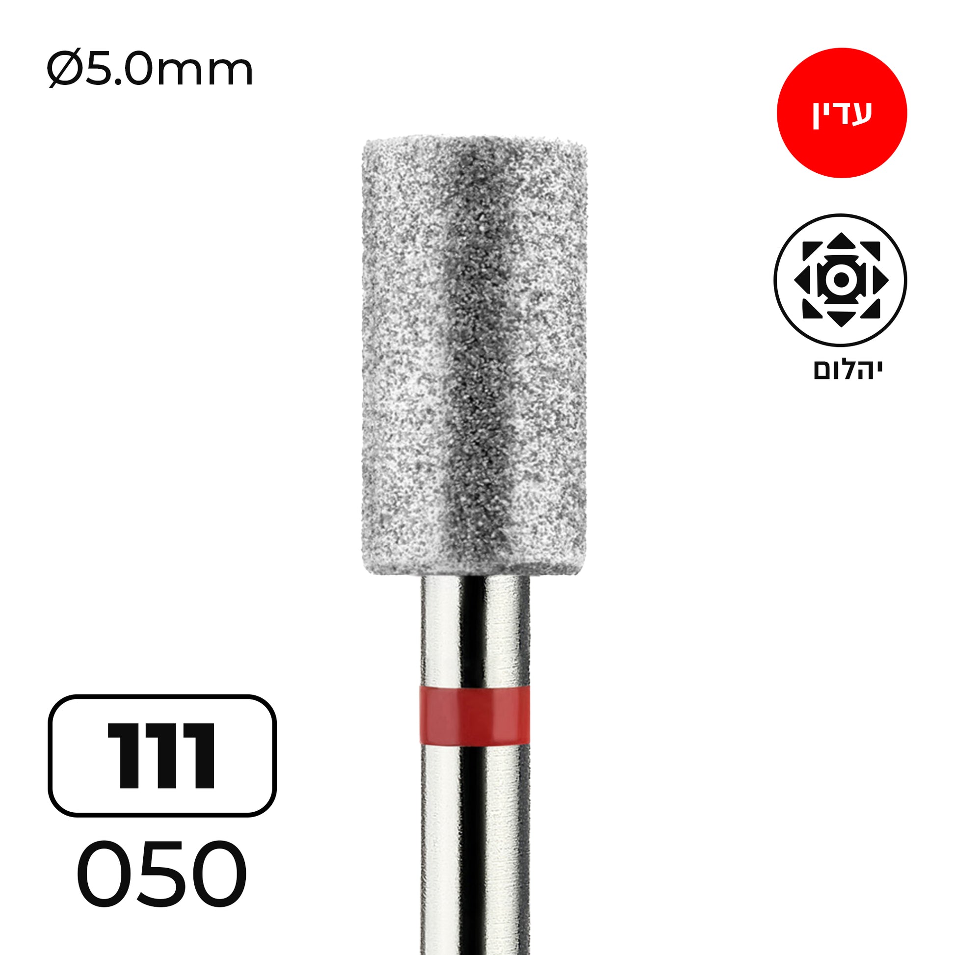 מקדח ראש שיוף יהלום לסלון יופי "צילינדר" אדום עדין 111/050