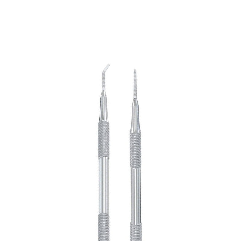 פצירה דו-צדדית לציפורן חודרנית - קצה אחד ישר וחד, וקצה שני מכופף מרובע שני הקצוות מיועדים לתפיסת והנפת הציפורן, לניקוי תאי עור מתים מתחת ללוחית הציפורן והתעלות הצדדיות.