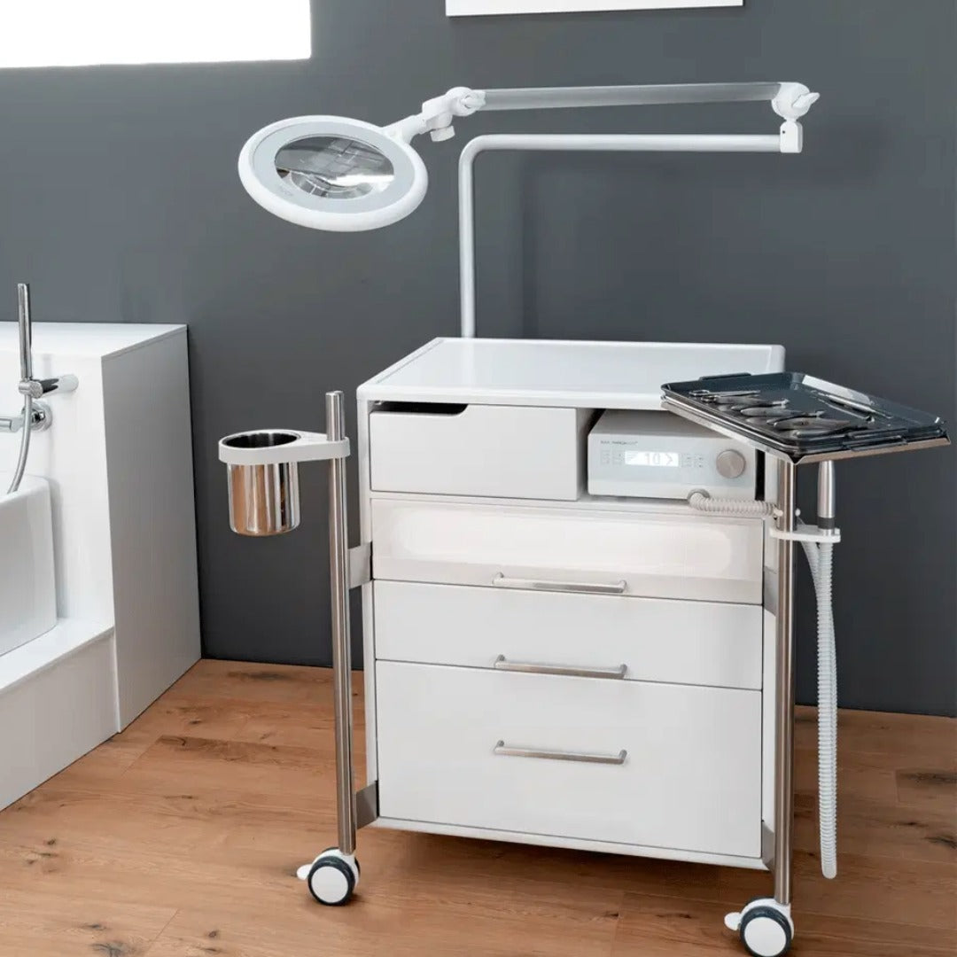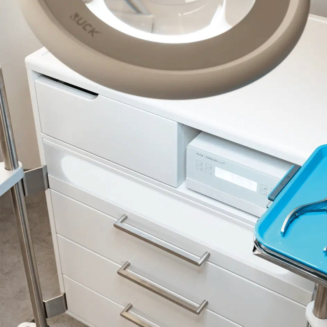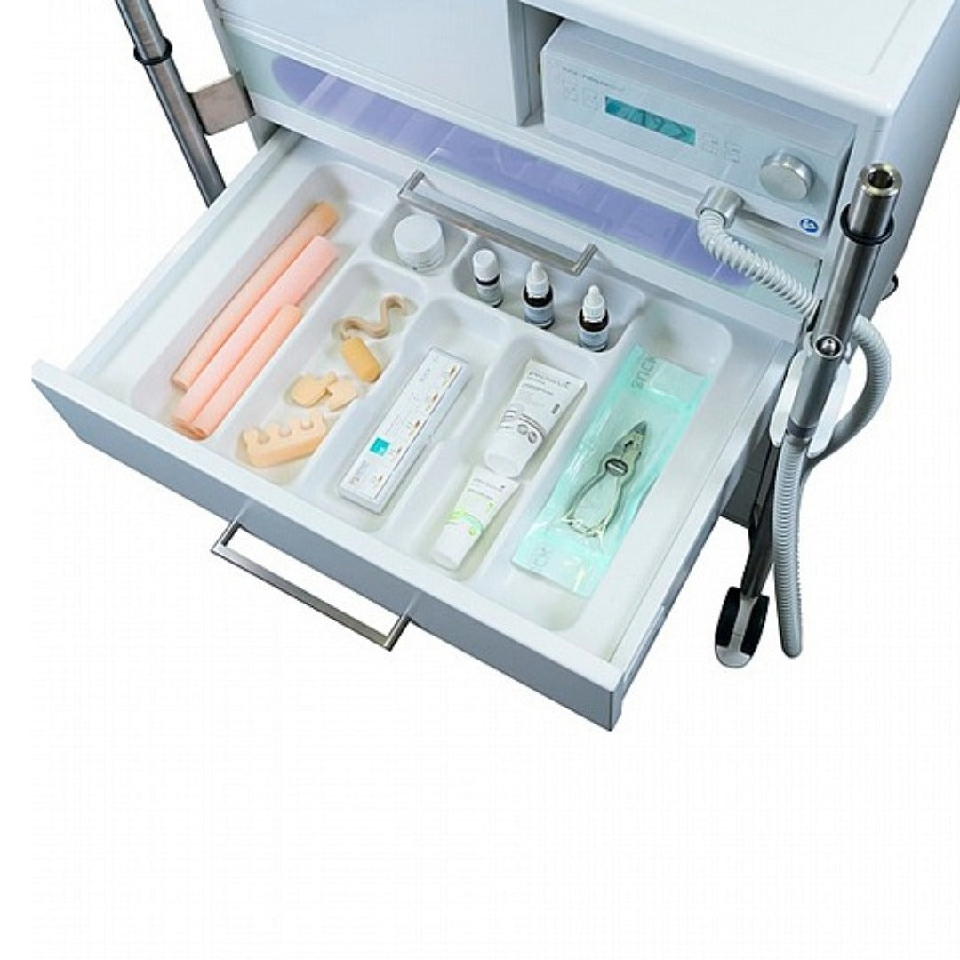 ארון עבודה חכם ומעוצב שמארגן את כל ציוד הפדיקור במקום אחד, משפר את הזרימה בעבודה ומעניק סביבת טיפול נקייה ונוחה.