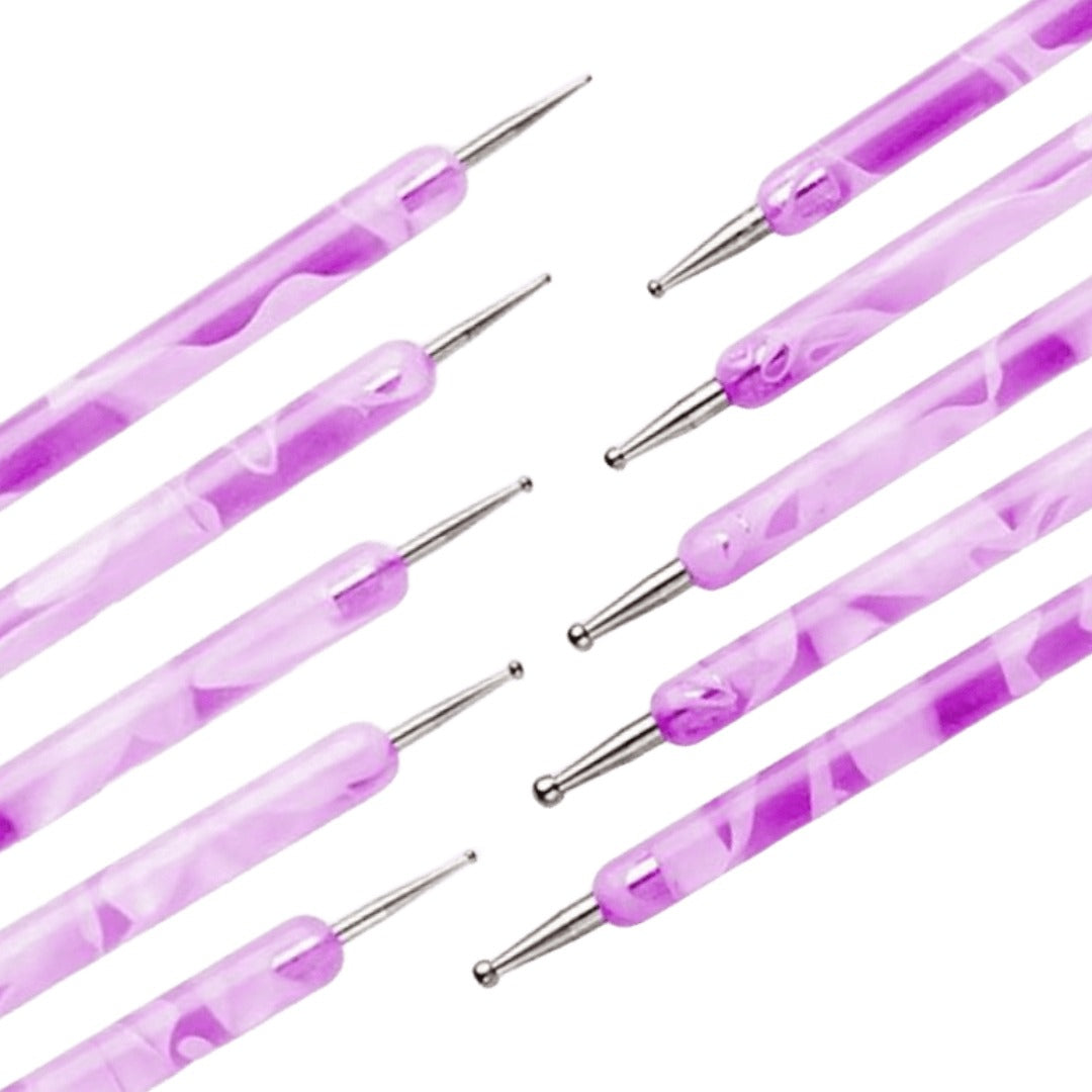 מנקד מקצועי דו-צדדי עם ראשים בגדלים שונים לאומנות נייל ארט, קישוט ועיצוב מדויק - סט 5 יח